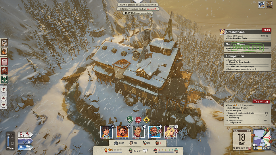 Rozgrywka nie kończy się jednak na czterech ciepłych kątach schroniska. Gospodarze mogą wytyczać własne szlaki, planując trasy z uwzględnieniem punktów widokowych czy niebezpiecznych przełęczy. Specjalnie zaprojektowany system zadań pozwoli również organizować akcje ratunkowe, transportować zaopatrzenie i odkrywać kolejne zakamarki alpejskich szczytów.