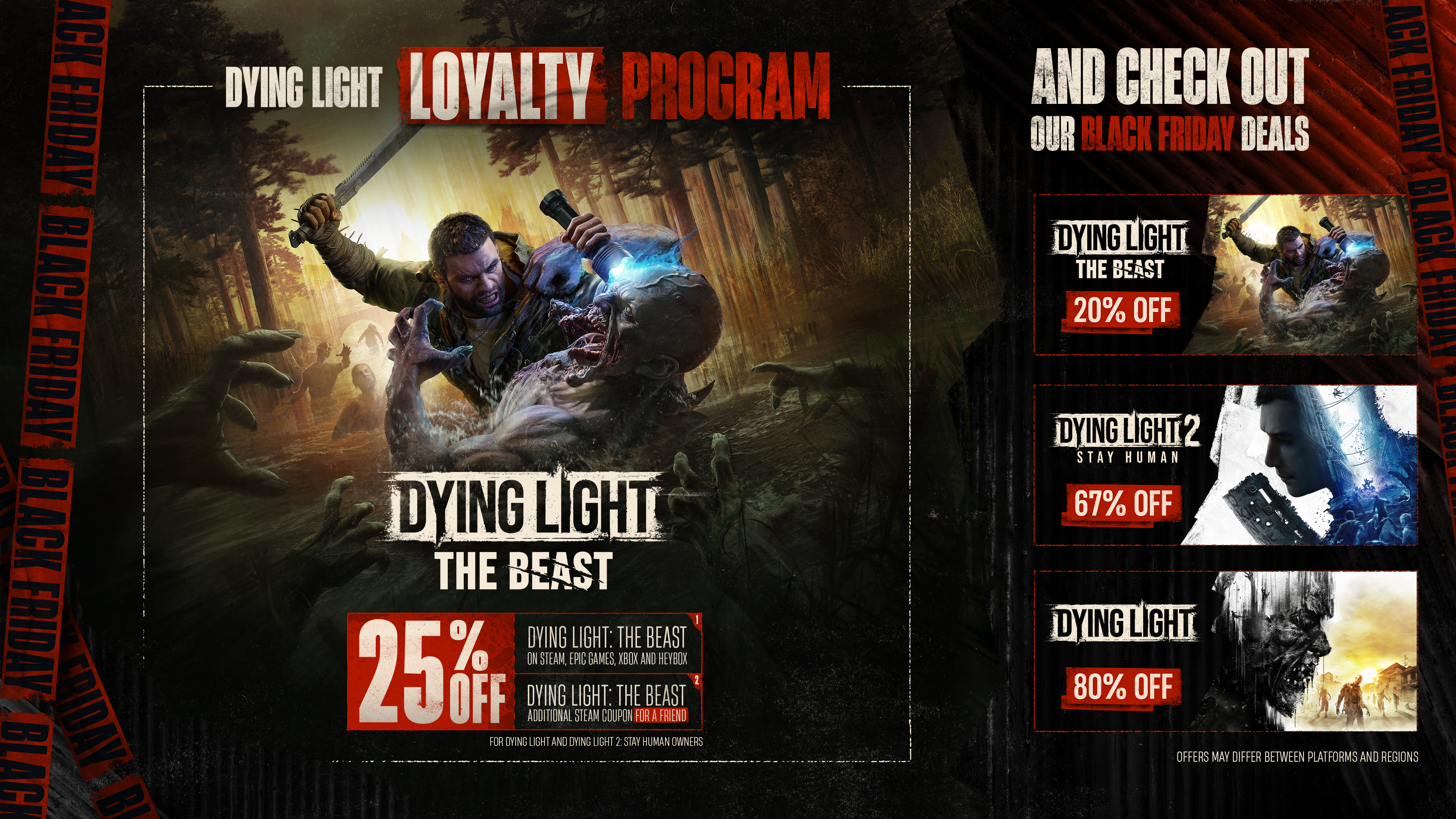 Dying Light: The Beast to unikalne połączenie gry z otwartym światem, survival horroru i pełnych akcji doświadczeń. Tytuł przenosi cię do pięknej, lecz zabójczo niebezpiecznej doliny Castor Woods, która zamiast turystów została opanowana przez zombie. Aby pokonać swojego byłego oprawcę, będziesz musiał wykorzystać swoje moce i zdolności, by przemierzać świat gry i walczyć z tymi, którzy staną na Twojej drodze, jednocześnie uważając, by nie stać się ofiarą niepewnego sojuszu.