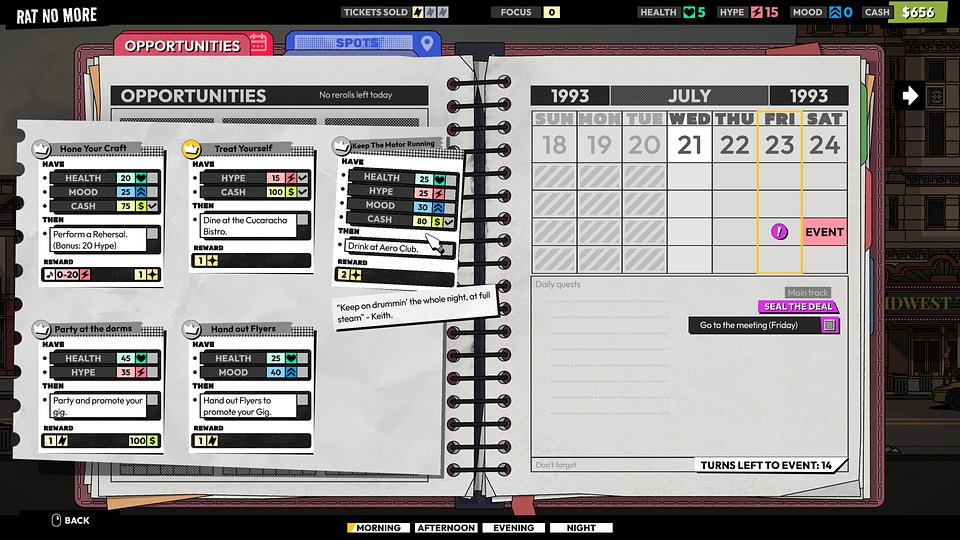 Zarządzaj lichym budżetem i kruchym ego Twoich muzyków. Układaj setlisty, które porwą tłumy. Naprawiaj instrumenty, a następnie samodzielnie graj na nich na klubowych scenach. W tym RPG każdy triumf i porażka zależą od Twoich działań i decyzji.